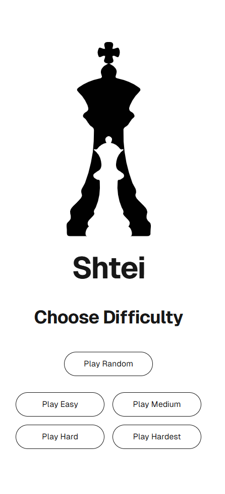A web application featuring a chess variant called "Shtei" that I co-created with AI opponents and online multiplayer functionality. The project integrates a modified Stockfish engine for AI gameplay and includes a custom Socket-based backend for online matches.