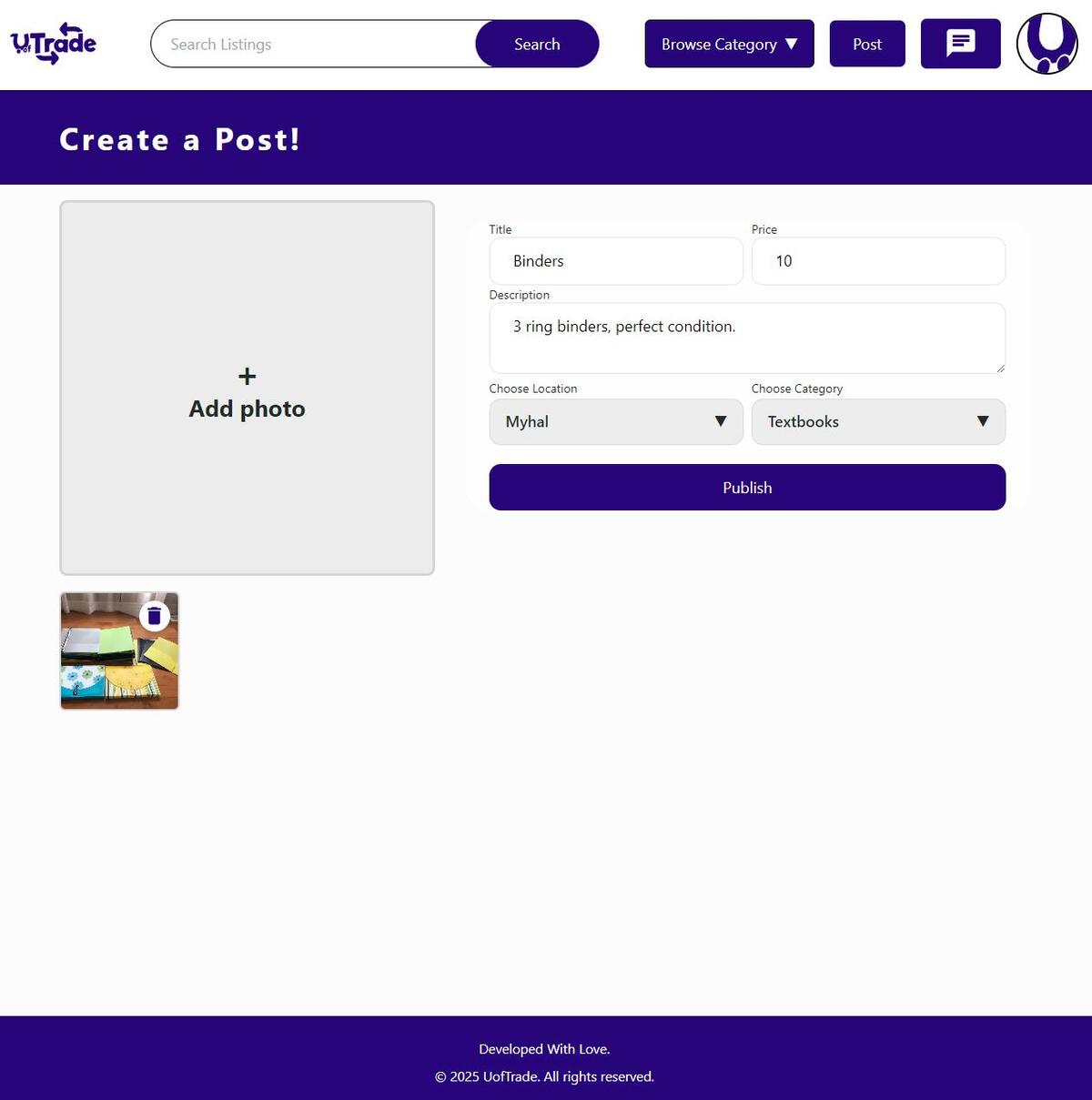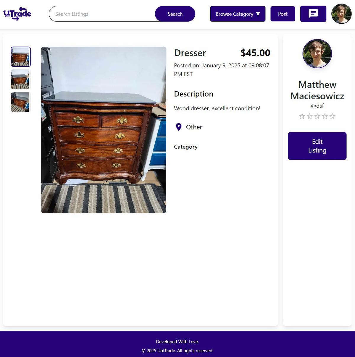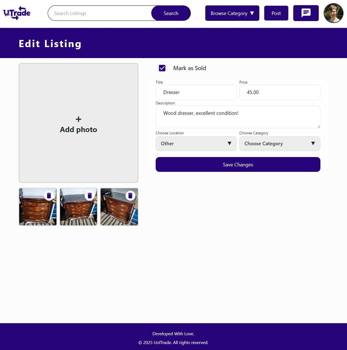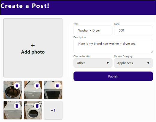 A responsive React/Next.js-based marketplace for buying and selling items, akin to Kijiji or Facebook Marketplace. Includes features like browsing, searching, filtering, image uploads, and post creation. The project was developed collaboratively in an Agile environment, utilizing Jira for task management and Docker for containerization.